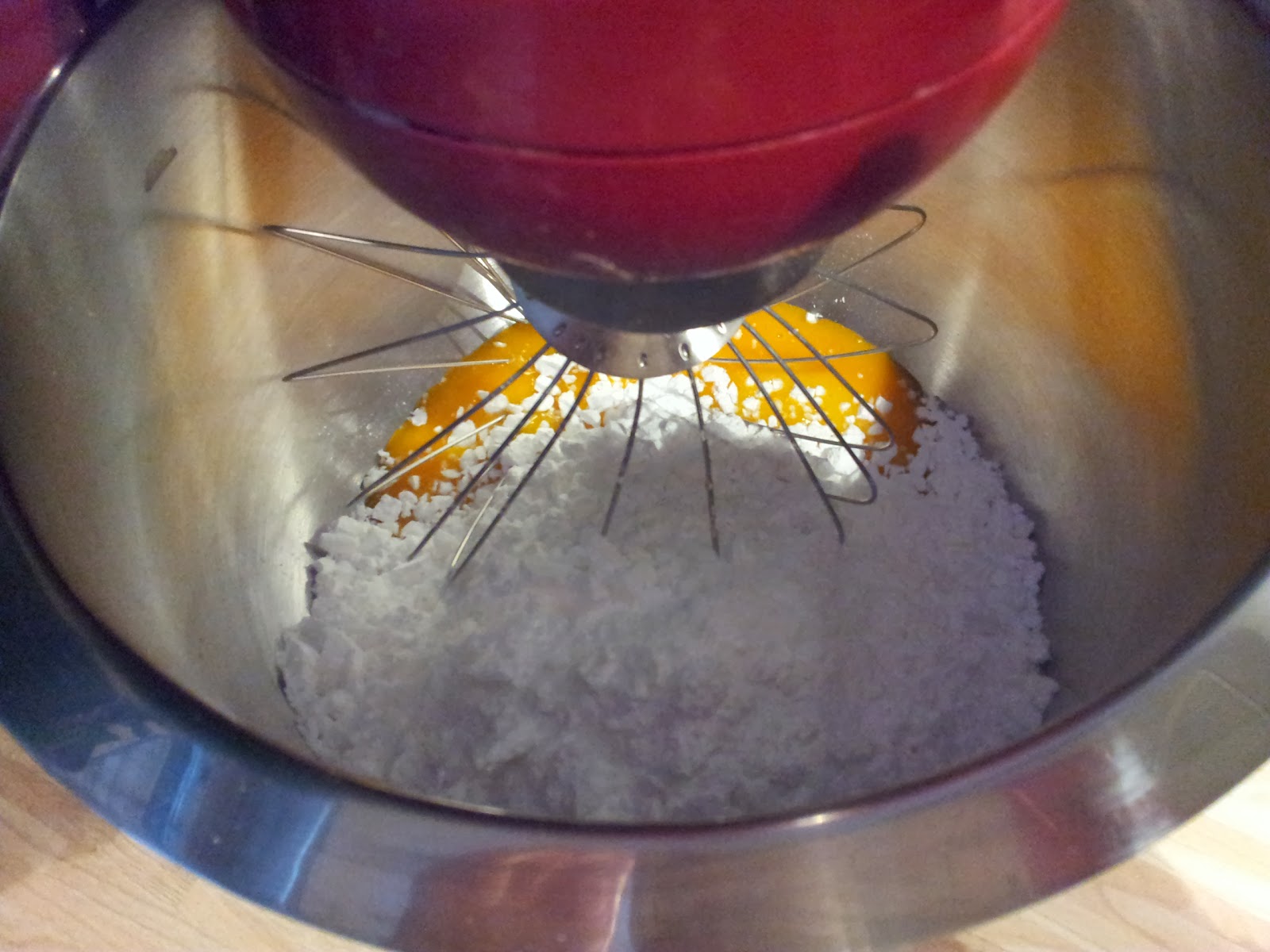 2. Den Puderzucker zu den Eigelben geben und solange rühren bis die Masse schaumig wird. (Solltet ihr eine Küchenmaschine haben, würde ich ihr das Rühren überlassen. Das ganze sollte richtig schaumig fest und ganz hell werden, dann wird der Eierlikör später schön cremig.)